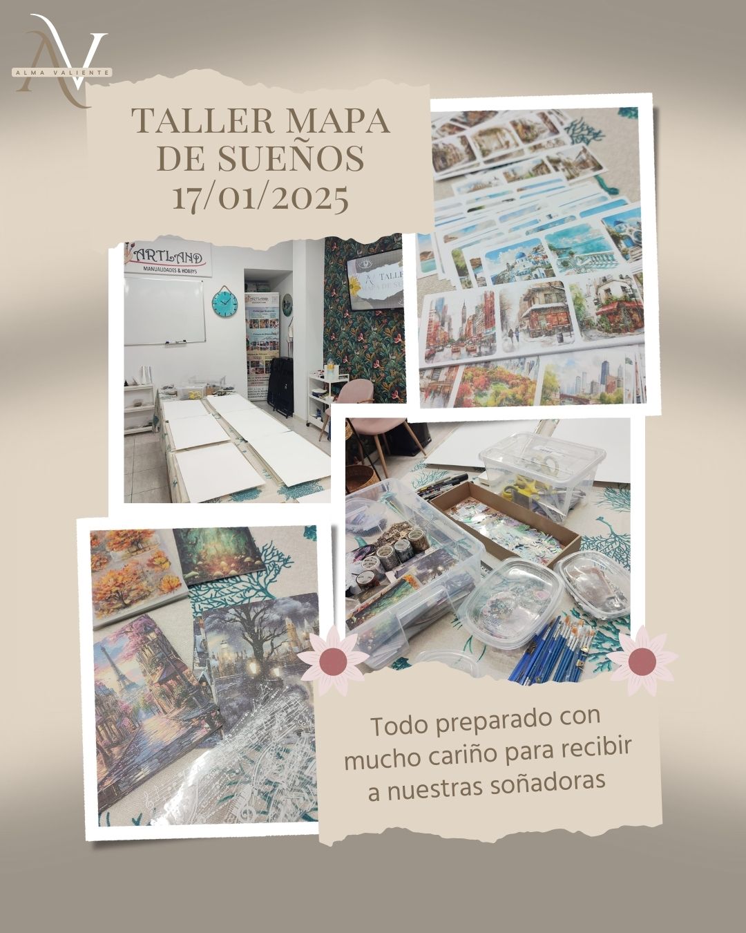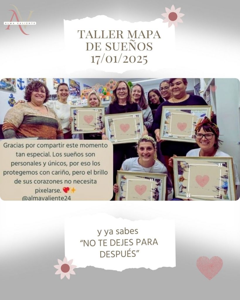 El pasado 17/01/2025, en Alma Valiente, vivimos una tarde inolvidable llena de creatividad, emociones y sueños compartidos. Nuestro taller de mapa de sueños no solo fue un espacio para plasmar metas y deseos en un collage inspirador, sino también una experiencia de conexión profunda entre mujeres que buscan más de la vida.