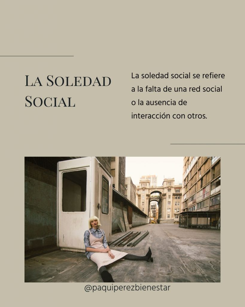 La soledad social ocurre cuando nos sentimos excluidas o desconectadas de nuestro entorno social. Puede ser resultado de mudanzas, cambios de trabajo o situaciones personales. Enfrentar esta soledad implica tomar la iniciativa para salir de nuestra zona de confort, buscar actividades que nos apasionen y crear nuevos lazos sociales.